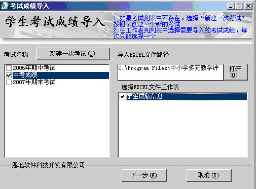 (學生成績導入界面2)