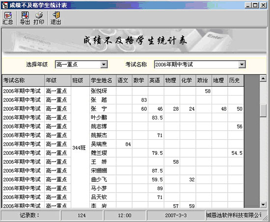 (不及格統(tǒng)計表)