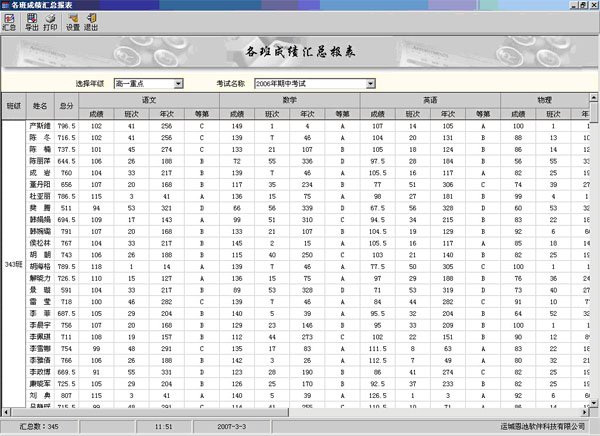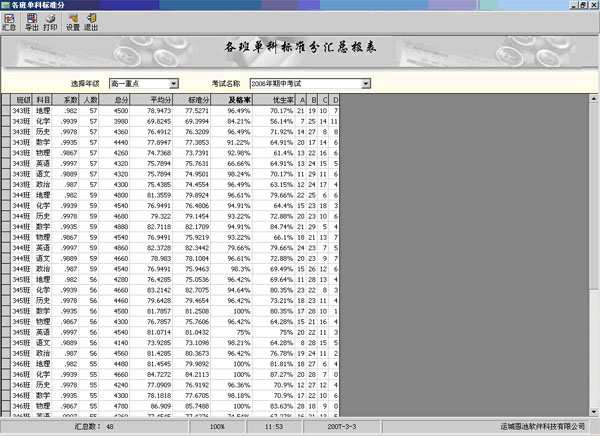 (總分等第統(tǒng)計界面)